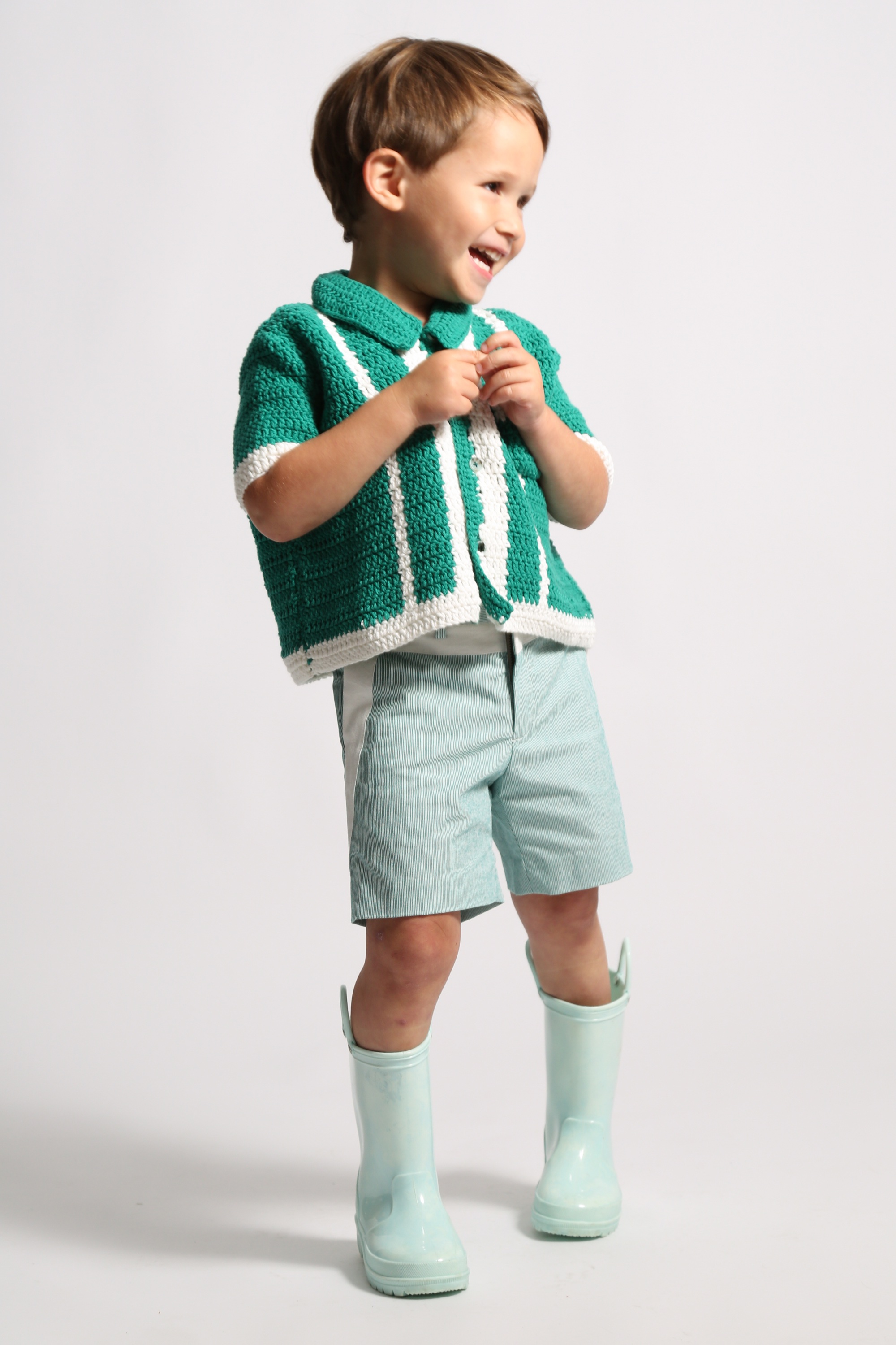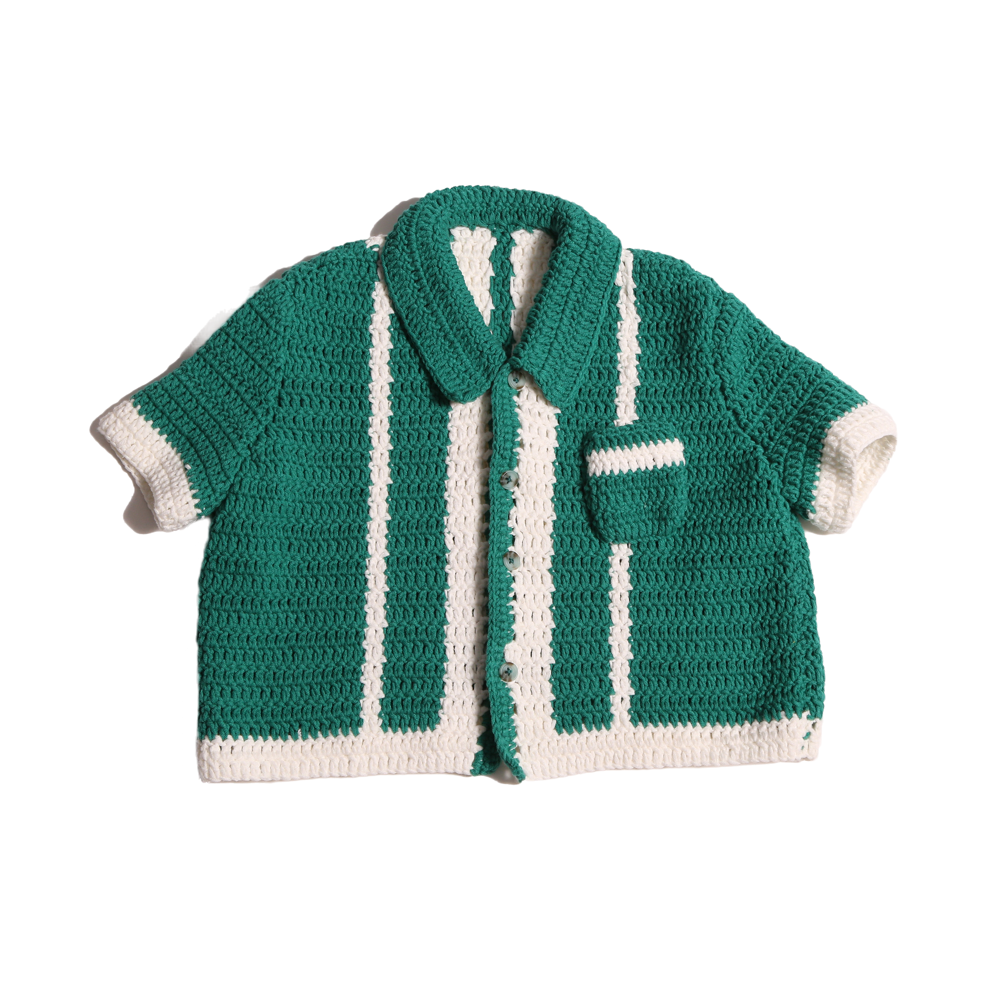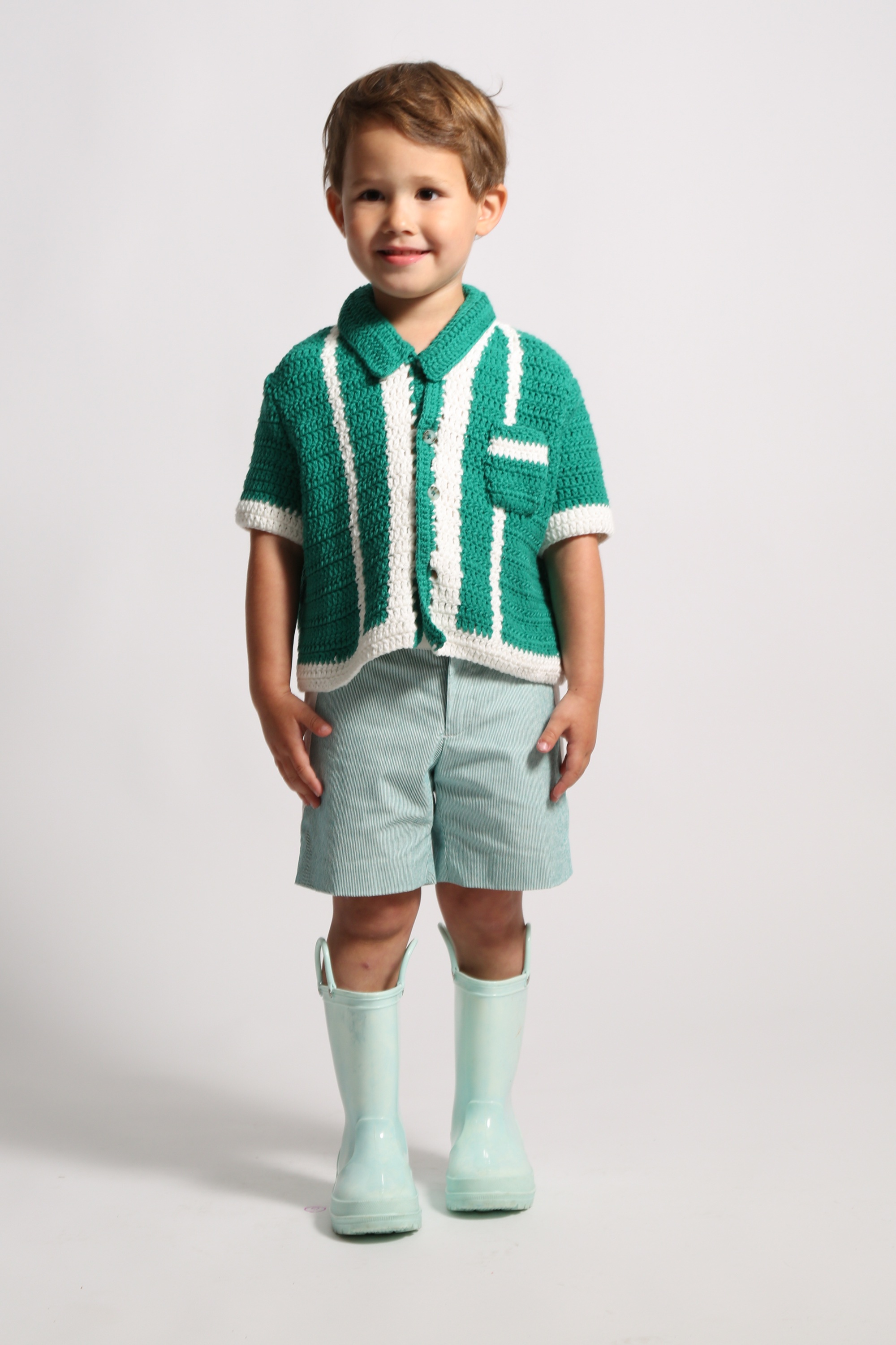 CREW CROCHET POLO CARDI – KELP MIX