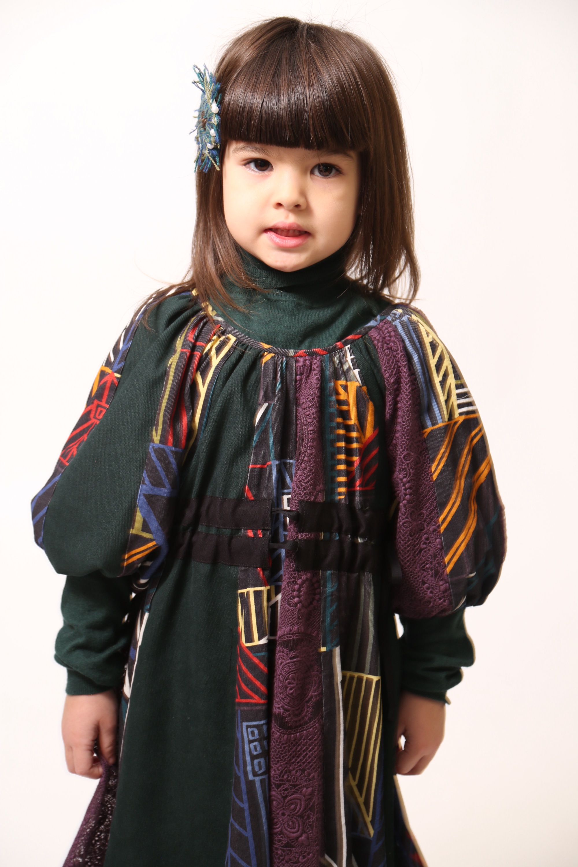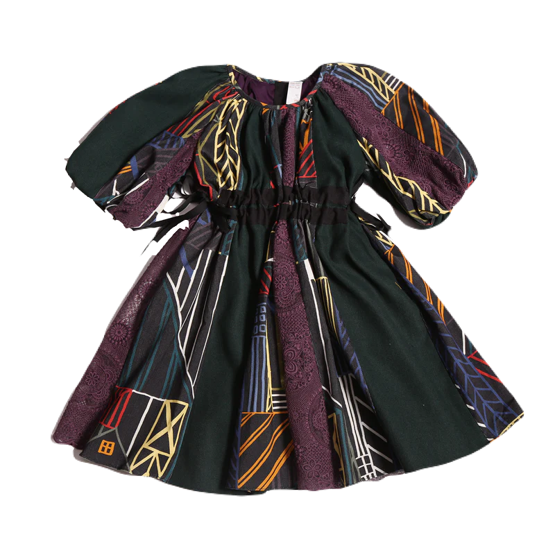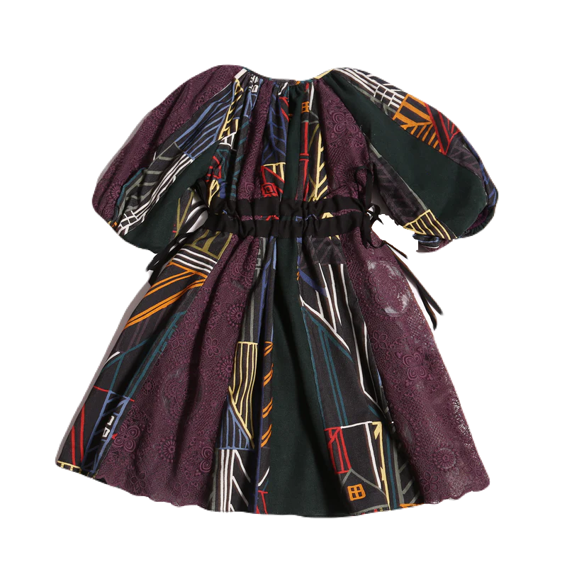 GWENN PATCHWORK RIBBON TIE FROCK – RAINBOW